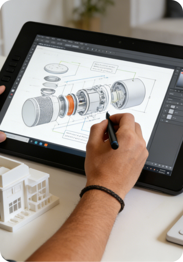 From concept to manufacturable prototype—define functions and form, validate feasibility, and refine the user experience across diverse product categories.